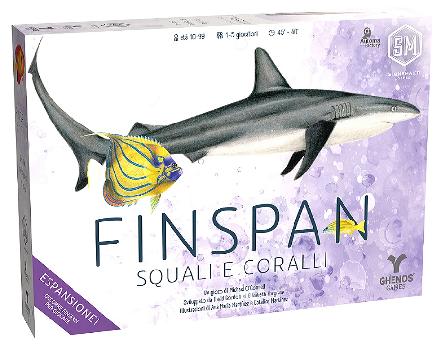 Finspan - Squali e Coralli è l’espansione che porta i giocatori ancora più in profondità nell’ecosistema marino di Finspan, arricchendo l’esperienza di gioco con nuovi habitat, splendide barriere coralline e squali dotati di abilità sorprendenti.