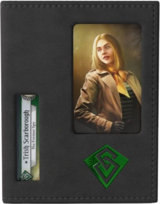 La scatola permette di vedere ritratto, classe, nome e tratto dell’investigatore attraverso appositi ritagli, mantenendo il mazzo protetto. Include un divisorio per le carte abbinato al colore dell’investigatore e un sistema di chiusura a forti magneti per garantire sicurezza e precisione.